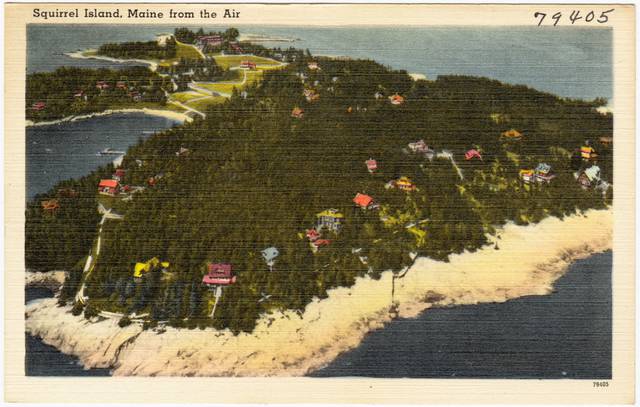 Squirrel Island, Maine is a summer resort colony off the coast of Boothbay Harbor. The origin of the name is not related to its squirrel population, since according to island chronicler Charles McLane "[s]quirrels do not inhabit the island," but, rather, refers to the shape of the island which, when seen from above, resembles a squirrel holding an acorn. Farmers and sheep herders have resided on Squirrel Island since the American Revolutionary War. The summer colony was created with the formation of the Squirrel Island Association in 1871 as a village corporation within the town of Southport, the first of a handful of communities so governed in the state of Maine. The "village corporation" adds an additional layer of control within the town government to meet the island's unique needs that arise from the fact that most island residents are not year-round residents of the Town of Southport and therefore have no right to vote in local elections. Squirrel Island pays taxes to Southport and receives funds for necessary services from that town; however an additional tax (the "Squirrel Island Special Tax") is levied that is completely locally controlled and spent. Residents of Squirrel Island are subject to the Laws of the United States, State of Maine, Lincoln County, Southport Island, and Squirrel Island. Additionally, most land parcels are leased from the Squirrel Island Association, subjecting the leasee to land use rules similar to a restrictive covenant or homeowner's association. There are approximately 100 parcels, each with one one-family cottage. Most cottages were first built between the 1870s and 1920s; however, most have been remodeled and enlarged over the years. Squirrel Island has no industry, and residents must vacate for the winter due to the above-ground plumbing which is drained to prevent freezing. Residents enjoy beaches, tennis, boating, a local restaurant, library, and chapel. The island receives telephone, electric and water utilities via undersea cables and pipes from the mainland. Residents are not allowed vehicles and must walk on a network of paved sidewalks. A ferry boat (the Novelty) runs regular trips from Boothbay Harbor. Being a summer colony, the island is popular among young adults in search of a summer job (working at venues such as the local restaurant or the historical society, among others).