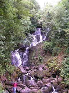 Torc Waterfall is a waterfall at the base of Torc Mountain, about 5mi from Killarney in County Kerry, Ireland. The falls are one of the landmarks on the 200 kilometre Kerry Way walking tour, and are encompassed in the Killarney National Park. Red deer are frequently seen and heard in the area. Easy access and parking make the site popular with walkers and tour bus groups, who often visit as part of the Ring of Kerry tour. A public hiking trail stretches from the waterfall to the top of Torc Mountain.