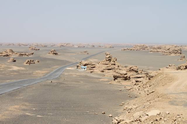 Dunhuang Yardang National Geopark is a national park in Dunhuang, Gansu Province, China, that shows the Yardang geological feature of the area. Yardang has been created over time by the soft part of the earth's surface being eroded by wind and rain, with the hard part of the rocks remaining in the desert. The geopark is located about 180 kilometers northwest of Dunhuang's town center and covers an area of 398 square kilometers. Some of the uniquely-shaped rocks in the geopark are named "Mongolian Bao", "Camel", "Stone Bird", "Peacock", "The Golden Lion Welcoming His Guests", etc. The unique rock formations in the park developed over a period of 700,000 years. The Yadan geomorphic formations found in the Dunhuang Yadan National Geopark are the largest in China. One of the most remarkable sites in the Dunhuang Yadan National Geopark is the Yadan Ghost Town. Located within the Ghost Town is the Aisikexiaer Castle. The word 'Aisikexiaer' means 'old city' in the Uyghur language.