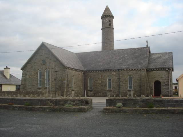 Quilty historically Killty, is a small fishing village between Milltown Malbay and Doonbeg in County Clare, Ireland. Lobster, salmon, bass, herring and mackerel are landed at Quilty, formerly known for its curing industry. The area was officially classified as part of the West Clare Gaeltacht, an Irish-speaking community, until 1956. The Catholic Church, belonging to the parish Kilmurry Ibrickane, is the most prominent building, its round tower being visible for miles around the flat countryside. It was built in remembrance of the Leon XIII rescue.