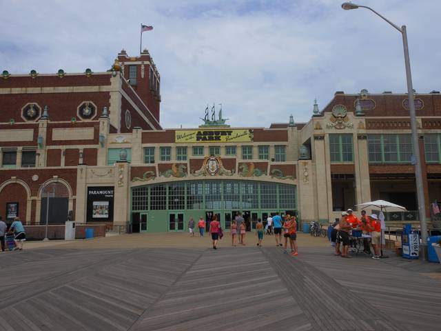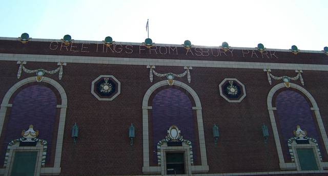 Asbury Park Convention Hall is a 3,600-seat indoor exhibition center located on the boardwalk and on the beach in Asbury Park, Monmouth County, New Jersey, United States. It was built between 1928 and 1930 and is used for sports, concerts and other special events. Adjacent to the Convention Hall is the Paramount Theatre; both are connected by a Grand Arcade. Both structures are listed in the National Register of Historic Places.