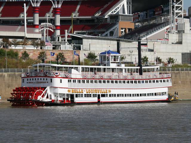 Belle of Louisville is a steamboat owned and operated by the city of Louisville, Kentucky, and moored at its downtown wharf next to the Riverfront Plaza/Belvedere during its annual operational period. Originally named Idlewild, she was built by James Rees & Sons Company in Pittsburgh, Pennsylvania, for the West Memphis Packet Company in 1914 and was first put into service on the Allegheny River. Constructed with an all-steel superstructure and asphalt main deck, the steamboat is said to hold the all-time record in her class for miles traveled, years in operation, and places visited. Belle of Louisvilles offices are aboard Mayor Andrew Broaddus, also a National Historic Landmark.