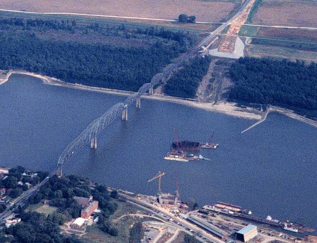 It was built just south of its predecessor, the Cape Girardeau Bridge, which was completed in 1928 and demolished in 2004. Prior to its destruction, it was documented for the Library of Congress Historic American Engineering Record Survey number HAER MO-84.