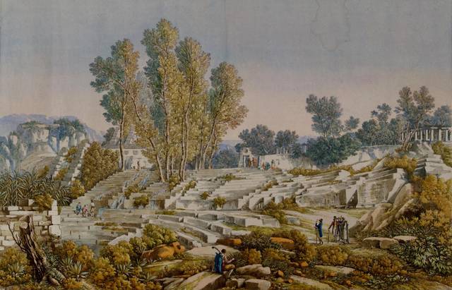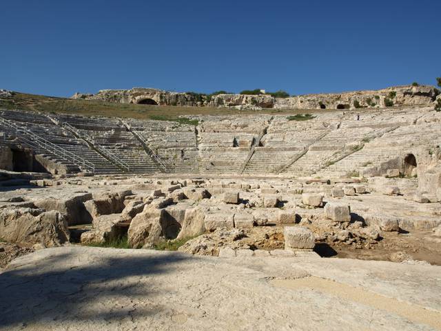 The Greek theatre of Syracuse lies on the south slopes of the Temenite hill, overlooking the modern city of Syracuse in southeastern Sicily. It was first built in the 5th century BC, rebuilt in the 3rd century BC and renovated again in the Roman period. Today, it is a part of the Unesco World Heritage Site of "Syracuse and the Rocky Necropolis of Pantalica".