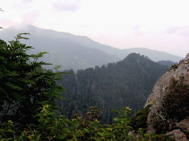 Charlies Bunion is a mountain in the Great Smoky Mountains of the Southeastern United States, characterized by a large boulder-like protrusion just below the summit on its otherwise-sheer northern face. The mountain is a rare instance of a bare-rock summit in the Smokies.