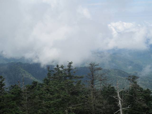 The Southern Appalachian spruce-fir forest which covers Clingmans Dome occurs only at the highest elevations in the southeastern United States, and has more in common with forests at northern latitudes than with the forests in the adjacent valleys. Clingmans Dome stands prominently above the surrounding terrain, rising nearly 5000ft from base to summit. The forest on and around Clingmans Dome has experienced a large die-off of Fraser fir caused by the non-native insect, balsam woolly adelgid.