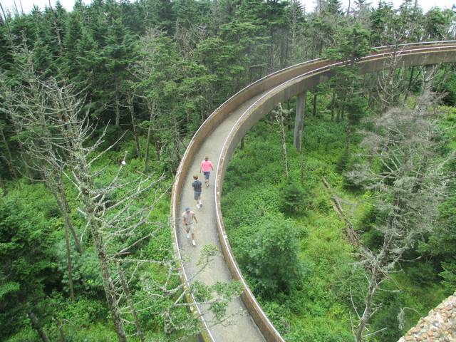 Clingmans Dome is protected as part of the Great Smoky Mountains National Park. A paved road connects it to U.S. Highway 441 (Newfound Gap Road). The 45ft concrete observation tower, built in 1959 and listed on the National Register of Historic Places, offers a panoramic view of the mountains. An air quality monitoring station, operated by the Environmental Protection Agency, is the second highest in eastern North America.