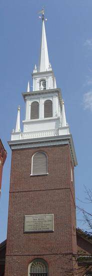 Old North Church at 193 Salem Street, in the North End of Boston, is the location from which the famous "One if by land, and two if by sea" signal is said to have been sent. This phrase is related to Paul Revere's midnight ride, of April 18, 1775, which preceded the Battles of Lexington and Concord during the American Revolution.