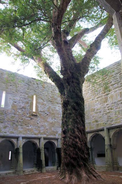 It has had a violent history and has been damaged and reconstructed many times. The friars were often subjected to raids by marauding groups and were persecuted by Cromwellian forces under Lord Ludlow. Today the abbey is largely roofless although, apart from this, is generally quite well preserved. Its most striking feature is a central courtyard, which contains a large yew tree and is surrounded by a vaulted cloister.
