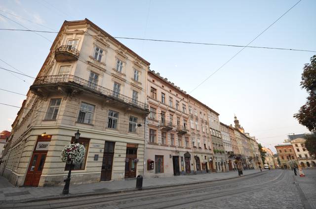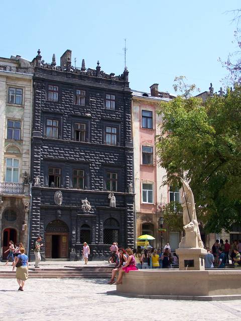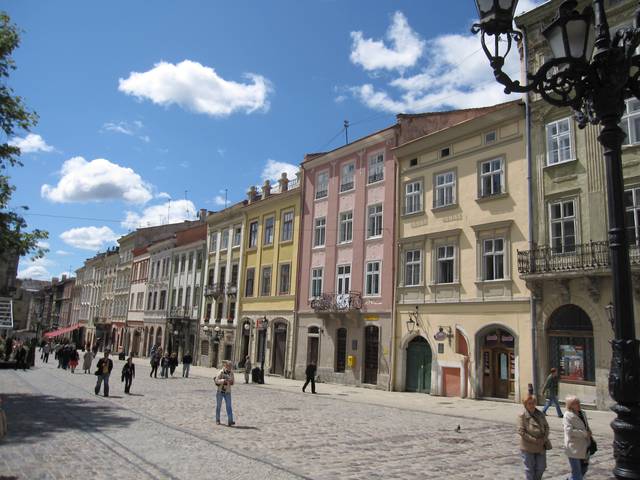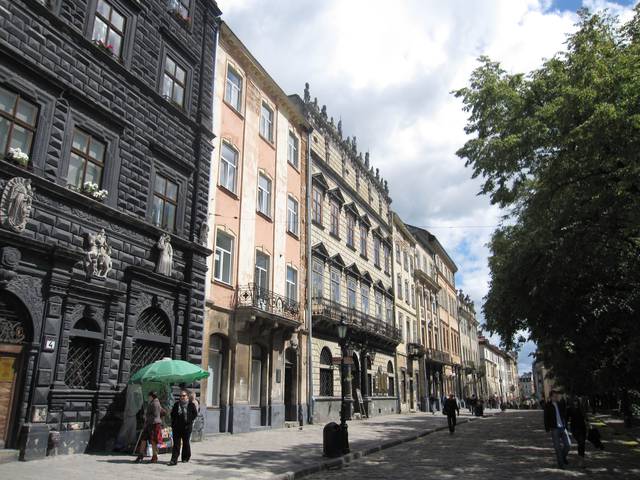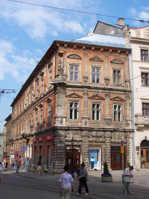 Rynok Square is a central square of the city of Lviv, Ukraine. It was planned in the second half of the 14th century, following granting city rights by King Casimir III the Great of Poland, who incorporated Red Ruthenia into the Kingdom of Poland in 1349. The king ordered Lviv to be moved more to the south, where a new city was built to the plan of a traditional European settlement: a central square surrounded by living quarters and fortifications. Old, Ruthenian Lviv had become a suburb of the new Polish city.
