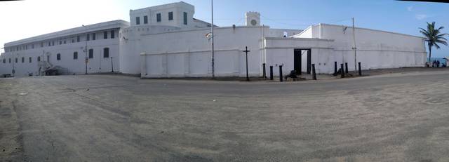 Cape Coast Castle is one of about forty "slave castles", or large commercial forts, built on the Gold Coast of West Africa by European traders. It was originally built by the Swedes for trade in timber and gold, but later used in the trans-Atlantic slave trade. Other Ghanaian slave castles include Elmina Castle and Fort Christiansborg. They were used to hold slaves before they were loaded onto ships and sold in the Americas, especially the Caribbean. This “gate of no return” was the last stop before crossing the Atlantic Ocean.