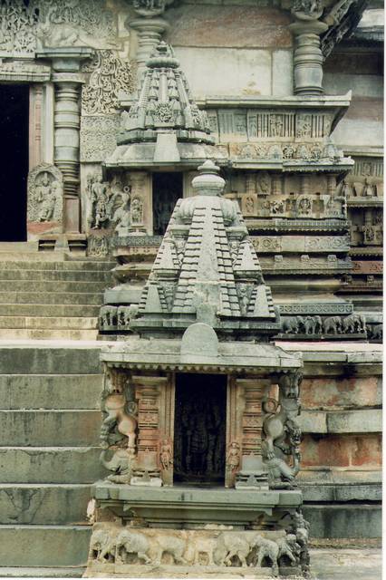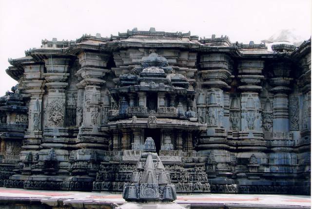 The Chennakeshava Temple, originally called Vijayanarayana Temple , was built on the banks of the Yagachi River in Belur, by the Hoysala King Vishnuvardhana. Belur, which was an early Hoysala capital, is in the Hassan district of Karnataka state, India. It is 40 km from Hassan city and 220 km from Bangalore. Chennakesava (lit, "handsome Kesava") is a form of the Hindu god Vishnu. Belur is well known for its marvelous temples built during the rule of the Hoysala dynasty, making it and nearby Halebidu favored tourist destinations in Karnataka state. These temple complexes have been proposed to be listed under UNESCO World Heritage Sites.
