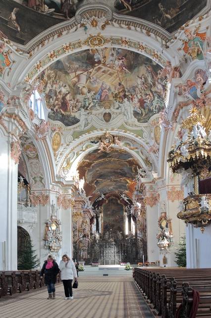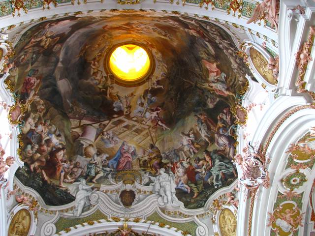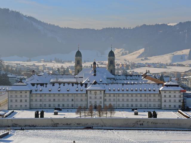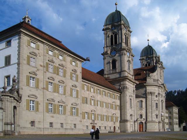 Einsiedeln Abbey is a Benedictine monastery in the town of Einsiedeln in the Canton of Schwyz, Switzerland. The abbey is dedicated to Our Lady of the Hermits, the title being derived from the circumstances of its foundation, for the first inhabitant of the region was Saint Meinrad, a hermit. It is a territorial abbey and, therefore, not part of a diocese, subject to a bishop. It has been a major resting point on the Way of St. James for centuries.