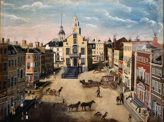 State Street in Boston, Massachusetts, is one of the oldest streets in the city. Located in the financial district, it is the site of some historic landmarks, such as Long Wharf, the Old State House and the Boston Custom House.