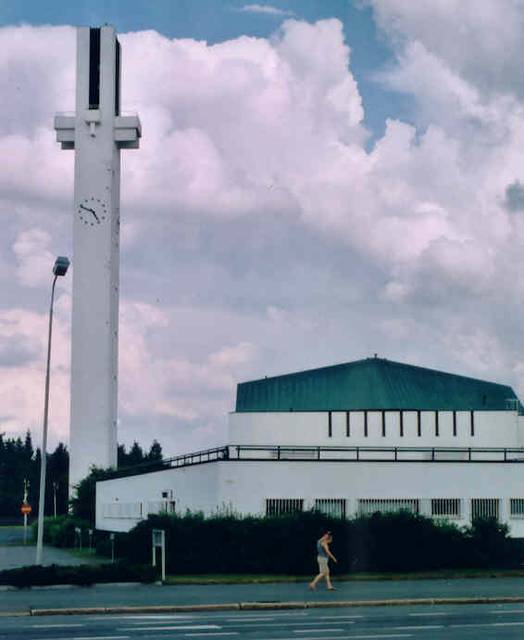 Lakeuden Risti Church is a Lutheran church located in Seinäjoki, Finland. The church was designed by Alvar Aalto and built between 1957–1960. It was the first finished building of the larger administrative and civic center also planned by Aalto, consisting of Seinäjoki town hall, a library, a theater and a state office building. The cathedral-like building seats 1200 people in the hall and 124 in the organ gallery. In the Gesamtkunstwerk spirit Aalto also designed silverware, antependiums, altar cloths and two stained glass paintings for the church. The cross-shaped bell tower from which the church gets its name is 65 meters high and a local landmark. A parish center by Aalto, consisting of white one-storey and two-storey buildings, was built next to the church in 1964–66. Aalto also planned the surrounding park. National Board of Antiquities has listed the church as a nationally significant built heritage site as part of Aalto's administrative and civic center. Docomomo has also selected the center as a significant example of modern architecture in Finland. The church was protected in 2003 by a degree from the Evangelical Lutheran Church of Finland central administration.
