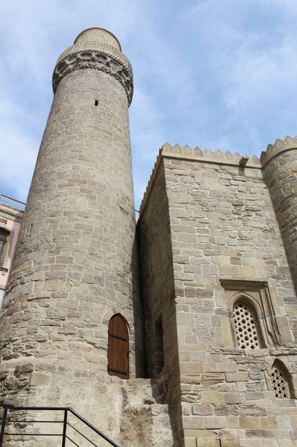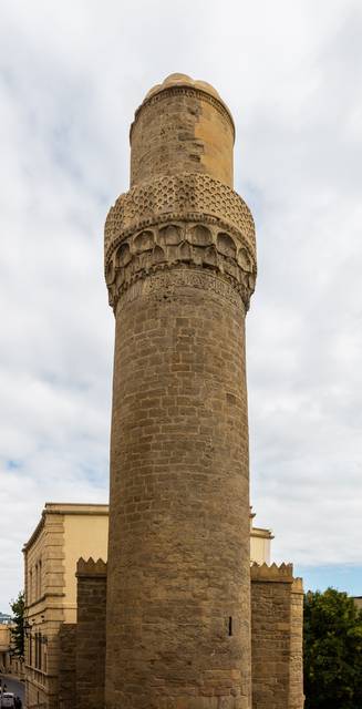 This is the mosque built in the 11th century in Icheri Sheher, Baku. The mosque is also known as Siniggala, for the name of its minaret – Siniggala (“damaged tower”). The mosque acquired its second name in 1723, when military squadron of Russian army, consisting of 15 warships and led by Admiral Matyushkin approached the city from seaside and demanded its surrender. Russian warships began to bomb the city after refusal. One of the shells hit in the minaret of Muhammad Mosque and damaged it. At that time blew stormy wind and took the Russian ships away to the sea. Population of the city interpreted it as a divine scourge sent to the occupants. From that time till the middle of the 19th century minaret of the mosque wasn’t reconstructed and was the symbol of persistence and courage of defendants of the tower. - It is the first building in Azerbaijan, which is related to Islam and dated for its architectural ligature. - According to Arabic inscription which was saved in front of doorway of northern wall of the mosque, it was built by ustad-rais Muhammad the son of Abu Bakr in 471 of Hijra (1078/79). It means that the architect was not only a master-ustad, but also a rais-head of artificers’ corporation. - A Minaret adjoins new mosque, which was constructed on the basis of the older one’s plan. Trunk of the minaret is strong and slightly thinning. It is constructed from carefully drafted stone. Coarse and flat stalactites of tabling retain sherefe – muezzin’s balcony enclosed by stone plates. A ribbed dome completes the trunk of minaret. Narrow winding stairs are winded within the trunk. Ligature with Koranic inscription was traced under the tabling with archaic kufi alphabet.