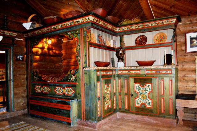 Heddal Open Air Museum is located near the historic Heddal stave church. Heddal Museum has various buildings representative of the history of local farming dating from the Middle Ages and up to the 1930s. Fyrileivstugu, a living room interior dating from 1932, was transferred to Heddal Museum in 1990. It was the work of noted wood carver and rosemaling artist, Olav Fyrileiv (1875-1975) who was a Telemark native.