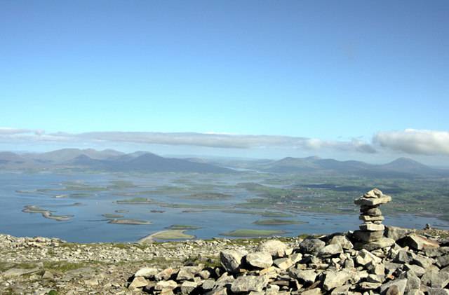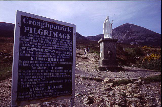 Croagh Patrick nicknamed the Reek, is a 764m mountain and an important site of pilgrimage in County Mayo in Ireland. It is 8km from Westport, above the villages of Murrisk and Lecanvey. It is the third highest mountain in County Mayo after Mweelrea and Nephin. It is climbed by pilgrims on Reek Sunday every year, which is the last Sunday in July. It forms the southern part of a U-shaped valley created by a glacier flowing into Clew Bay in the last Ice Age. Croagh Patrick is part of a longer east-west ridge; the westernmost peak is called Ben Gorm.