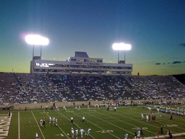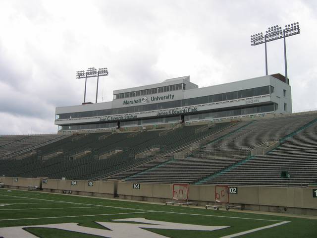Joan C. Edwards Stadium is a football stadium located on the campus of Marshall University in Huntington, West Virginia, United States. It can hold 38,227 spectators and includes twenty deluxe, indoor suites, 300 wheelchair-accessible seating, a state-of-the-art press-box, 14 concession areas, and 16 separate restrooms. It also features 90000sqft. of artificial turf and 1,837 tons of structural steel. It also houses the Shewey Athletic Center, a fieldhouse and a training facility. The new stadium replaced Fairfield Stadium, a condemned off-campus facility built in 1927 in the Fairfield Park neighborhood.