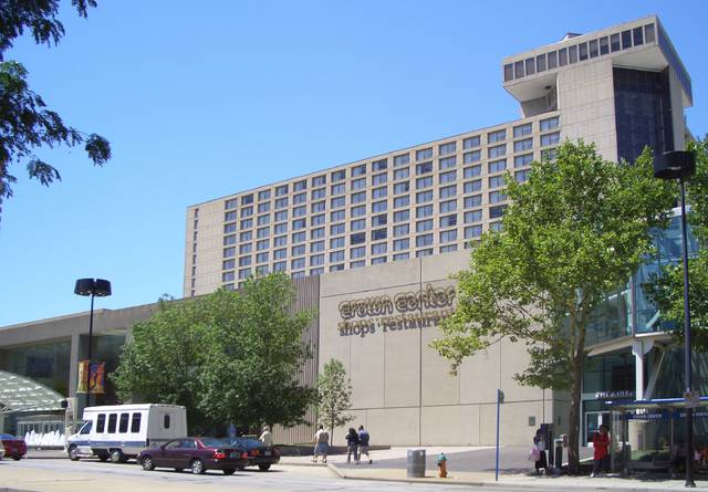 Crown Center is a commercial complex located near Downtown Kansas City, Missouri between Gillham Road and Main Street to the east and west, and between OK/E 22nd St and E 27th St to the north and south. The shopping center is anchored by Halls, a department store which is owned and operated by Hallmark Cards. The neighborhood contains numerous residences, retail establishments, entertainment venues, and restaurants . It is also home to Kansas City's two largest hotels, the global headquarters of Hallmark Cards, and the headquarters of Shook, Hardy & Bacon and Lathrop & Gage, two of Kansas City's largest law firms.