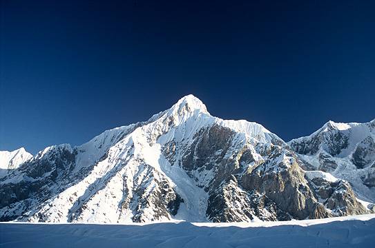 Engilchek Glacier is a glacier in the Central Tian Shan Mountains of Issyk-Kul Region, northeastern Kyrgyzstan. Its snout is 50 km east of the village of Engilchek. The South Inylchek Glacier ranks as the sixth longest non-polar glacier in the world and is the largest and fastest moving glacier in Kyrgyzstan. The main glacier has two arms, the North and South Engilchek Glaciers. The latter is longer and provides an overall length of 60.5km. with an area of 17.2km2 and an ice thickness of roughly 150–200 m in the bottom parts. The glacier stems from the Chinese-Kazakh-Kyrgyz massif of Khan Tengri and Pik Pobedy and the upper part of the glacier falls in all three countries. Meltwater from the glacier feeds a tributary of the Aksu River, which crosses the Chinese border into the Tarim Basin. Water from this glacier also feeds the seasonal glacial Lake Merzbacher which ultimately flows into the Engilchek River.