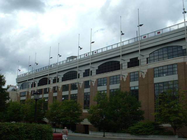 miles west of downtown Boston. The stadium lies within the city limits of Boston, although its postal address is Chestnut Hill. It is the home of the Boston College Eagles. Its present seating capacity is 44,500.