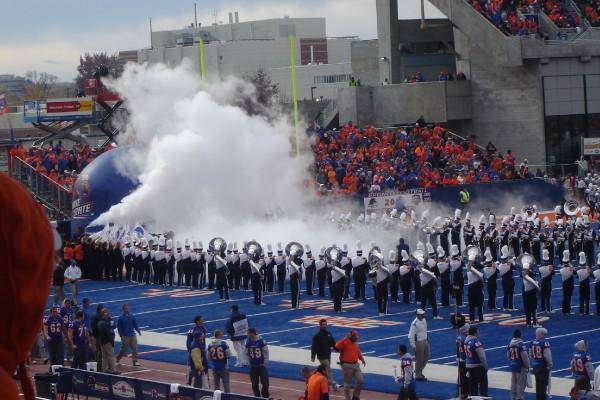 Albertsons Stadium is widely known for its unusual blue playing surface, installed in 1986, while Boise State was in the Big Sky Conference. It was the first non-green playing surface in football history and remained the only one among NCAA Division I FBS schools for over 20 years.