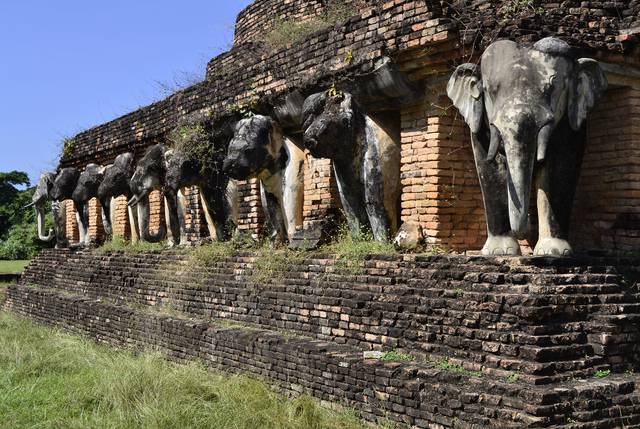 The Sukhothai Historical Park covers the ruins of Sukhothai, literally "Dawn of Happiness", capital of the Sukhothai Kingdom in the 13th and 14th centuries, in what is now Northern Thailand. It is located near the modern city of Sukhothai, capital of the province with the same name.