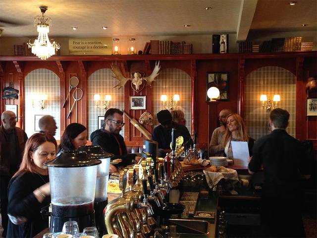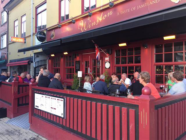 Sir Winston is a real bar in Östersund. Located close to the Stadsmuséet Ahlbergshallen, this english pub is known for its cold beer and a nice atmosphere. Has an outside terrace.