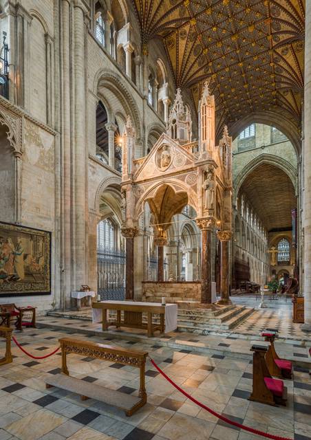 Peterborough Cathedral, properly the Cathedral Church of St Peter, St Paul and St Andrew – also known as Saint Peter's Cathedral in the United Kingdom – is the seat of the Anglican Bishop of Peterborough, dedicated to Saint Peter, Saint Paul and Saint Andrew, whose statues look down from the three high gables of the famous West Front. Although it was founded in the Anglo-Saxon period, its architecture is mainly Norman, following a rebuilding in the 12th century. With Durham and Ely Cathedrals, it is one of the most important 12th-century buildings in England to have remained largely intact, despite extensions and restoration.