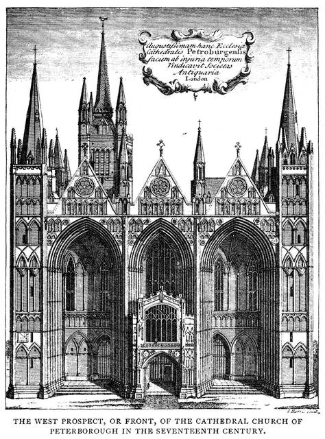 Peterborough Cathedral is known for its imposing Early English Gothic West Front which, with its three enormous arches, is without architectural precedent and with no direct successor. The appearance is slightly asymmetrical, as one of the two towers that rise from behind the façade was never completed (the tower on the right as one faces the building), but this is only visible from a distance.