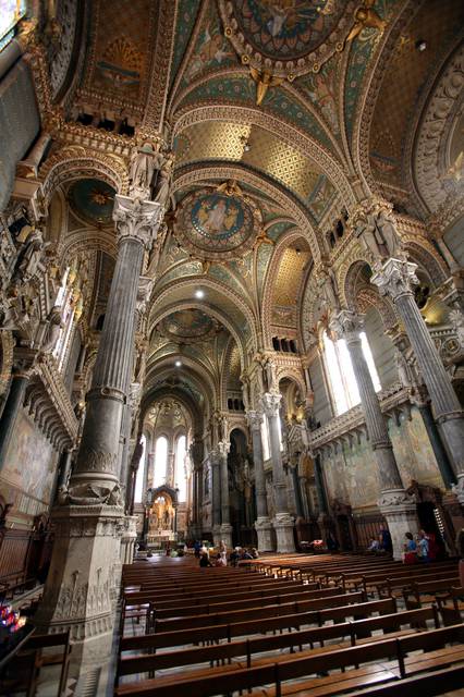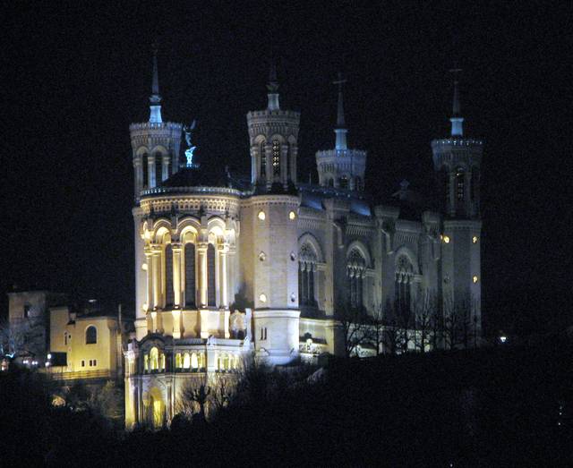 The Basilica of Notre-Dame de Fourvière is a minor basilica in Lyon. It was built with private funds between 1872 and 1884 in a dominant position overlooking the city. The site it occupies was once the Roman forum of Trajan, the forum vetus (old forum), thus its name (as an inverted corruption of the French Vieux-Forum).