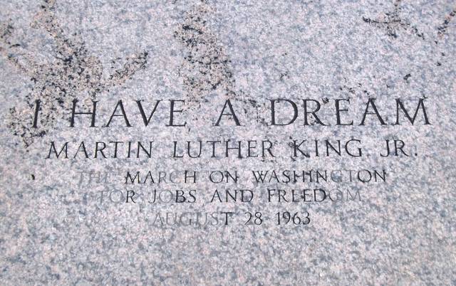The building is in the form of a Greek Doric temple and contains a large seated sculpture of Abraham Lincoln and inscriptions of two well-known speeches by Lincoln, "The Gettysburg Address" and his Second Inaugural Address. The memorial has been the site of many famous speeches, including Martin Luther King Jr.'s "I Have a Dream" speech, delivered on August 28, 1963, during the rally at the end of the March on Washington for Jobs and Freedom.